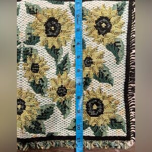 Set of 6 Vintage Sunflowers Woven Tapestry Placemats Green Yellow fringed