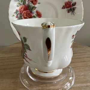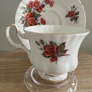 Absolutely beautiful set of 8 Royal Albert's Centennial Rose cups and saucers. Rich rose colours on white background; gold coloured rims. In excellent condition and from a smoke free home.