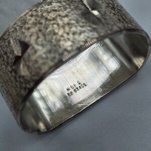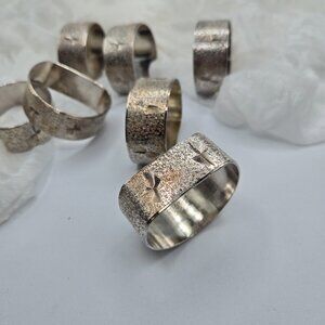 Set of 8 Vintage Silver Tone Brass Atomic Engraved Napkin Rings H of S EP Brass