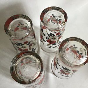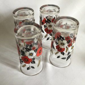 Set of Four Vintage Glass Tumbler with Floral Design Vintage