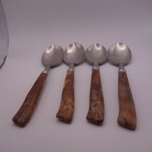 Set of Four(4) Stainless MB Japan Faux Bone Spoons - Has some wear and tear