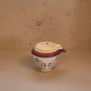 Largest cup for 1 cup measures 3" tall, 4" diameter, 2 1/4" diameter base