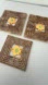 Set of Three Woven trivets with ceramic Yellow Flower Centre boho rattan wicker
