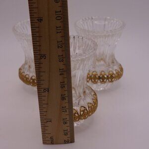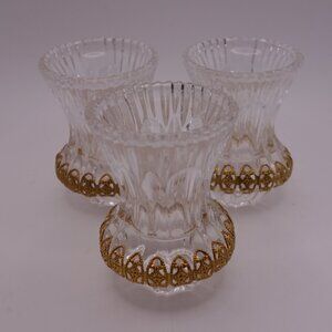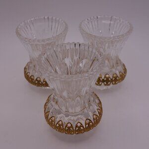 Set of Three(3) Crystal Toothpick Holders with Gold Color Metal Decoration