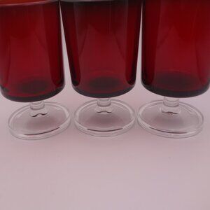 Set of Three(3) France Red Glasses with Thick Circular Base