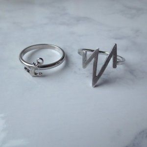 Set of Two Silver Rings with Anchor and Graph Angles