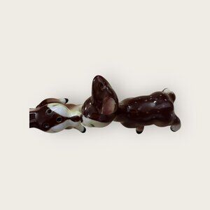 Elevate your kitchen decor with this charming set of vintage ceramic kissing deer fawn figural salt and pepper shakers. Originating from Japan, these shakers reflect a touch of retro style that's perfect for any occasion. The warm brown color and intricate animal shape bring a whimsical yet classic look to your dining ensemble.