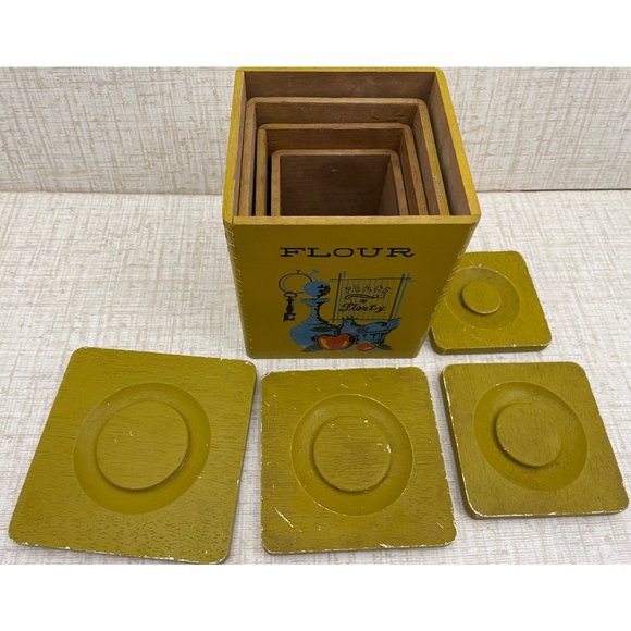 Set of kitchen canisters, wood dovetailed canisters set, olive / lime green, blu