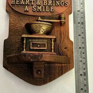 Set of two 1978 Miller Studio chalkware wall hangings Victorian kitchen theme. Featuring an old fashioned coffee grinder and tea kettle. These pieces were hugely popular from the late 60s to the early 80s, and now this retro goodness can be yours! Faux woodgrain brushed with bronze and gold paint. In very good preowned condition. The coffee grinder plaque has minimal chips. The tea kettle plaque has several visible white chips, but not enough to detract from the vintage appeal.