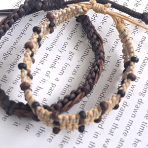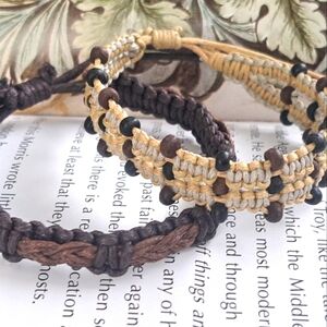 This set of two bracelets offers a relaxed and understated aesthetic, perfect for everyday wear. Crafted from a combination of supple leather and durable cord, the bracelets project a casual vibe that's easy to incorporate into any outfit. The leather provides a touch of classic texture, while the cord adds a more laid-back, bohemian feel. Despite being in great used condition, these bracelets retain their stylish appeal, suggesting they've been well-cared for and are ready for more adventures. Their versatile design makes them suitable for stacking or wearing individually, offering a simple yet effective way to accessorize.