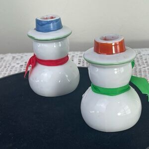 Set of 2 || Vintage ceramic candle stick holders || Snowmen candle holders