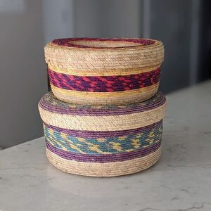 Nesting Baskets with Lids - Cute & Colourful. These are clean and in mint condition! Sea-grass? I'm not sure, but beautiful colouring and solid weave!