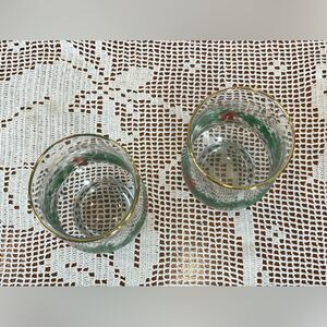 Set of two vintage Holly and Berries drinking glasses || vintage water glasses