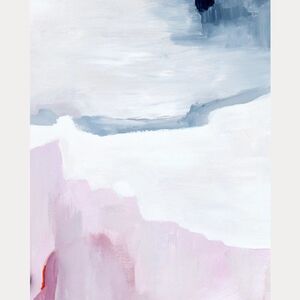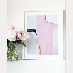 Set of 2 Abstract Art Prints by Liz Clay, matted but not framed, still in packaging - mint condition. Mat's are initialed by artist along with the title. Colorway of dusty pini/purple with white and grey/blue, hint of red.