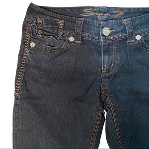 Seven 7 Women's Dark Wash Mid Rise Stretch Blue Denim Embroidered Skinny Jeans Waist 29