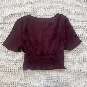 Seven Sister Purple Ruched V-Neck Cropped Going Out Shirt - Size XXS