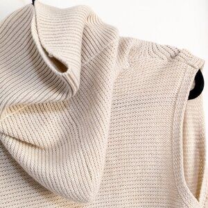 Seven Sisters Cream Knit Hooded Flowy Vest Size Small Cozy Casual Open Front