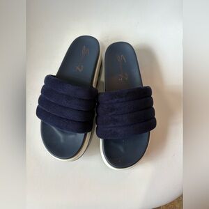 Seven7 chunky slide sandals Size 8 Navy, white Puffy strap Light wear