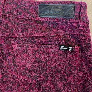 Seven7 women’s skinny 6P red/black lace looking jeans with zipper and button