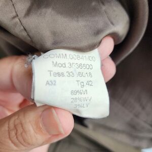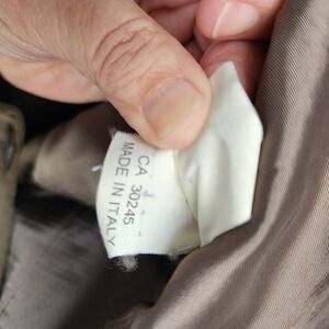 This jacket is in like new condition. No Flaws or signs of wear. Fabric I believe is Viscose/Virgin wool/Lyocell Blend with a satin like lining..
