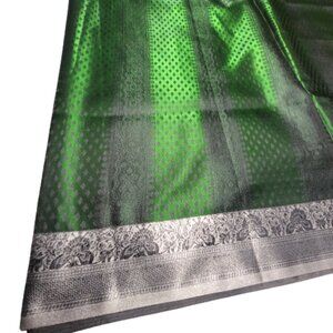 A beautiful green and grey fabric with a gleaming sheen about 18.6 ft