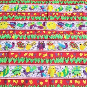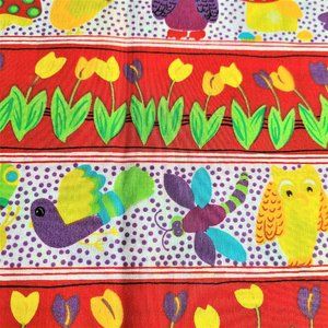 Super cute bright colors cotton sewing fabric with birds, mushrooms and flowers. 45'' x 40''. Great condition.