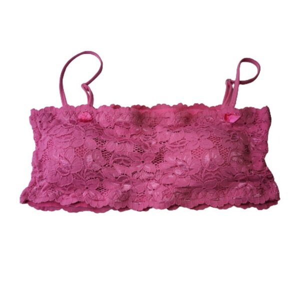 Sexy Pink Bralette Crop Top Lace Bandeau Adjustable Straps Removable Pads - NEW