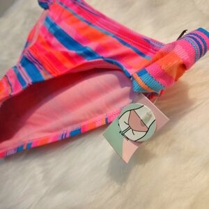 Make a splash in these vibrant bikini bottoms! Featuring a bold coral, pink, and blue pattern, these bottoms are as stylish as they are fun. With a flattering, curve-hugging fit, you'll be sure to turn heads at the beach or pool. Dive into the fun and show off your colorful side!