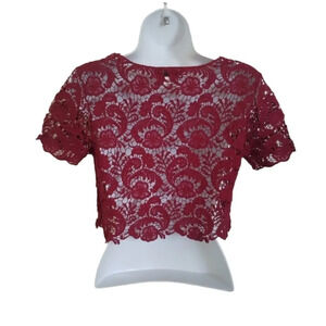 Sexy What? Cropped Crocheted Burgundy Top, M