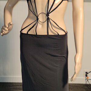 Sexy Women Black Long Dress With Long Slits on both Sides Small SL6036-2 comes with G-String S/M