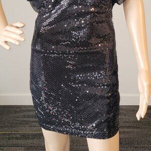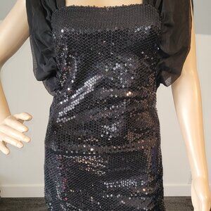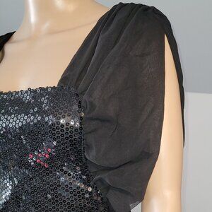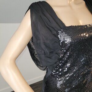 Sexy Women Black Sequin Short Sleeve Tunic Blouse Medium Small Tunic SL2837 comes S/M