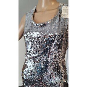 Sexy Women Short Sleeve Silver Sequin Mini Club Party Cocktail Dress Small