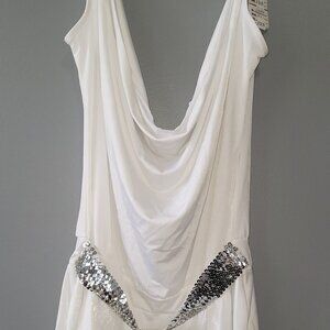 Sexy Women White Loose Dressy Stretch Tunic with Spaghetti Straps Medium N8497 comes With G-String, Silver Sequins Band