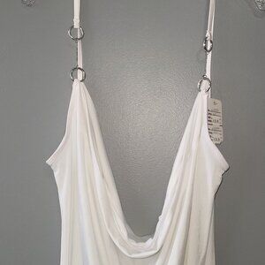 Sexy Women White Loose Dressy Stretch Tunic with Spaghetti Straps Medium N8497