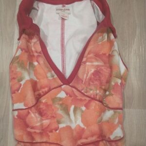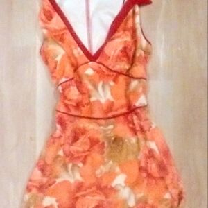 Beautiful sexy feminine cool summer dress, mini, deep neck line sleeveless, in pink tones. length 31 in bust 18 in