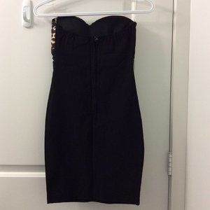 - Style: Mini (sexy!), zip up back, strapless, fitted