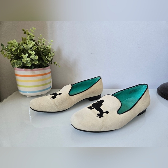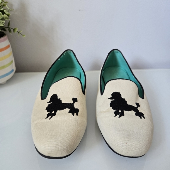 Adorable canvas poodle flats. Cream with a black poodle. So quirky and cute.