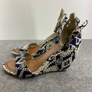 Seychelles Thyme Navy Print Ankle Strap Wedges Women’s Size 7