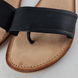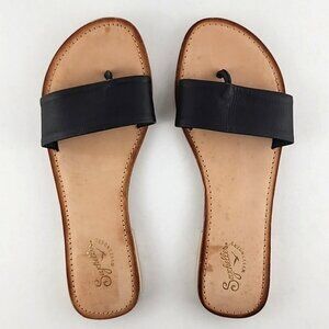 Seychelles Weekenders City Slicker Black Tan Leather Flat Thong Sandal Size 8