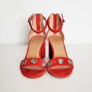 Seychelles x Cory Lynn Calter Red Suede Chunky Heel Sandals - Size 7