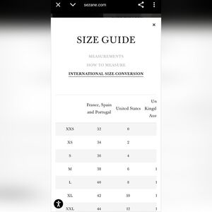 From Sezane website: "If you are between two sizes, choose the size above. Otherwise, choose your usual size."