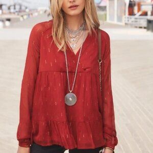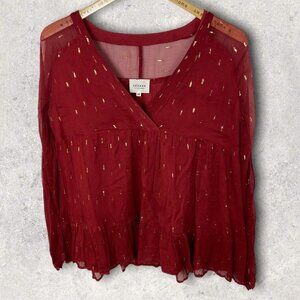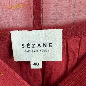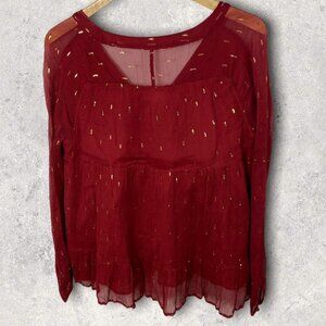 Sezane French Tiered Blouse Red Gold Flecks Stella Top Sheer Size 40 or 8 Boho