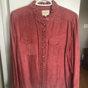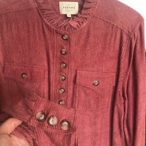 Sezane Kim Button-down Cord Shirt, Rosewood, Size 4/6