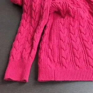 Chic cable knit design. Vibrant red hue. Perfect for layering.