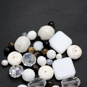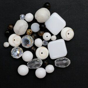 Shades of White Gemstone & Shell Bead Mix w/ Crystal & Glass - BEADLOT15