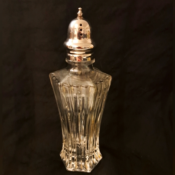 Lovely crystal shaker eith silver plate cap, excellent condition. approximately 6 inches high.