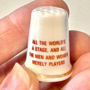 One of a collection I have inherited. This is a fine bone china thimble. This one is Shakespeare.