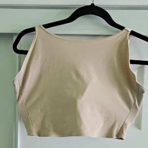 This cream t-shirt bra features smooth, molded cups for a seamless look under clothing. Designed for everyday comfort, it includes light padding and adjustable straps with gold-tone hardware for a personalized fit.