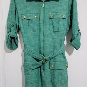 Sharagano Green Half Sleeve Half Zip Dress with Belt, Size 8, EUC