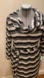 Sharagano “mummy” dress, large cowl neck, striped black, grey, cream, 16